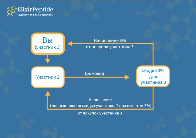 Партнерская программа предусматривает участие только физических лиц. Партнерская программа «ElixirPeptide» позволяет Вам зарабатывать на начислениях до 25%.